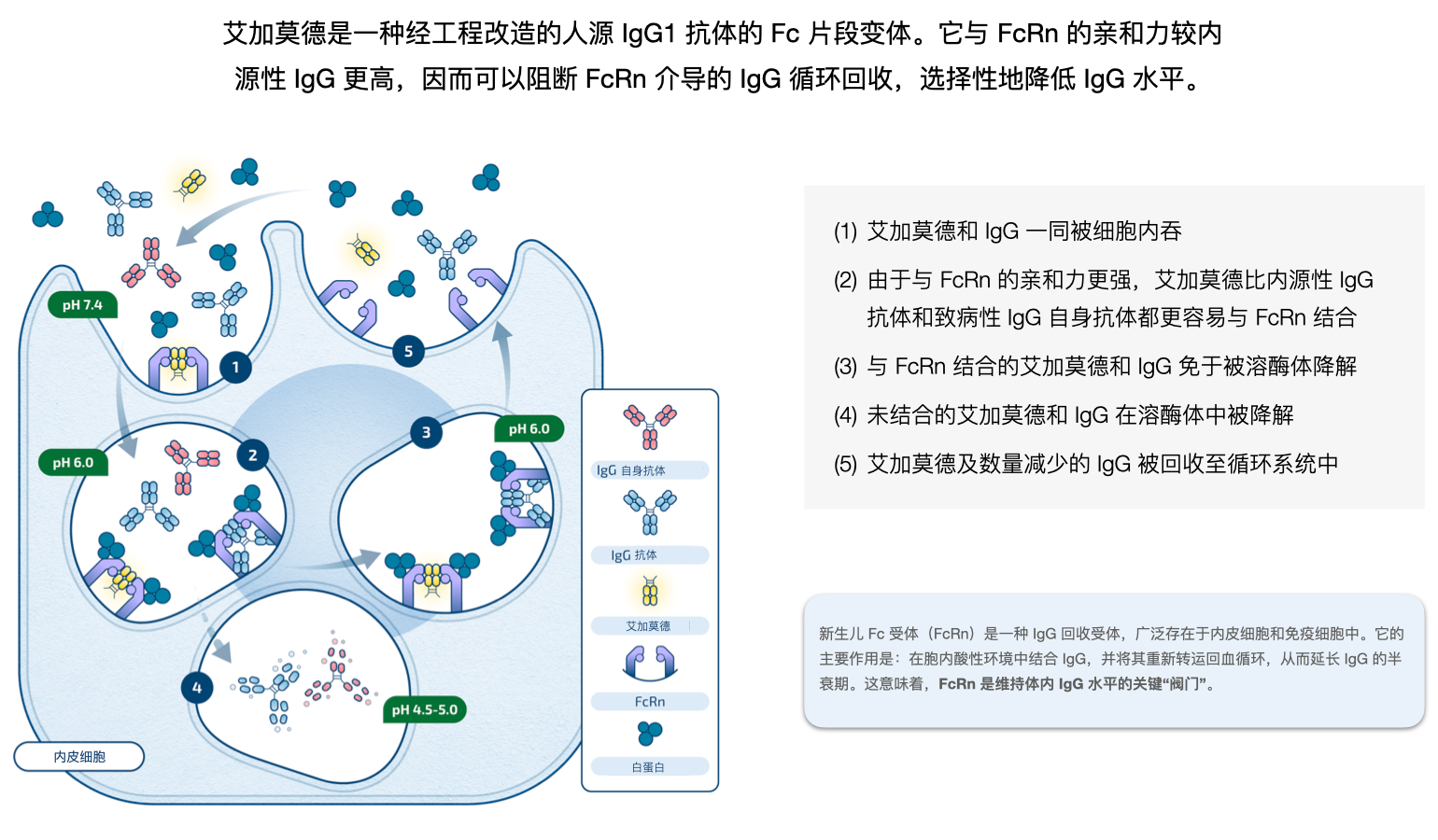理论上讲,所有和 IgG 相关的“抗体驱动型疾病”,艾加莫德都有可能产生疗效。换言之,它不是特定疾病的“针对性靶向药”,而是一种 免疫系统更高层级的调节工具,通过削减致病性 IgG,来解决一系列抗体介导疾病的根因。